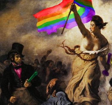 Na brzinu smo osmislili i vizual za prosvjed, malu preradu poznate Delacroixove slike "Sloboda vodi narod", s time da je francuska zastava pretvorena u onu duginih boja, dok smo pištolje i puške u rukama naslikanih pretvorili u raznobojne dildače. To je za Pride volonterski odradio mladi umjetnik Josip Joža Horvat. Naravno, kasnije su se dildača dohvatili razni protivnici prosvjeda, iz LGBT zajednice ali i izvan, kao dokaz pitajbogačega, no i dalje smatram da je ta doza humorne provokacije bila potrebna. Uostalom, nije li bolje da ljudi u rukama drže dildače nego smrtonosno oružje kojim se prekidaju životi?