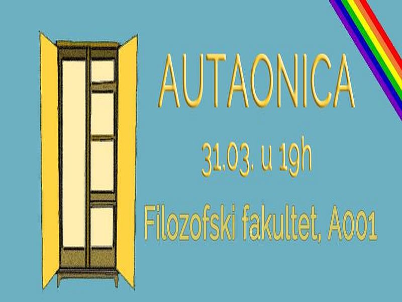 Iz neprofitne LGBTIQ inicijative Filozofskog fakulteta AUT pozivaju sve koji se još "skrivaju u ormaru" da bez straha i srama dođu na AUTaonicu, radionicu zatvorenog tipa za pomoć LGBT osobama pri autanju.