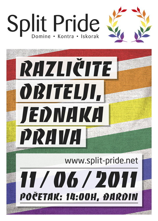 Pozivamo Vas na Split Pride koji se održava 11. lipnja s početkom u 14:00 sati. Povorka kreće s Đardina, ulicom Kralja Tomislava, Marmontovom ulicom te Rivom. Povorka završava na središnjem dijelu Rive (ispred konzulata) gdje će se održati dvosatni Split Pride program.
