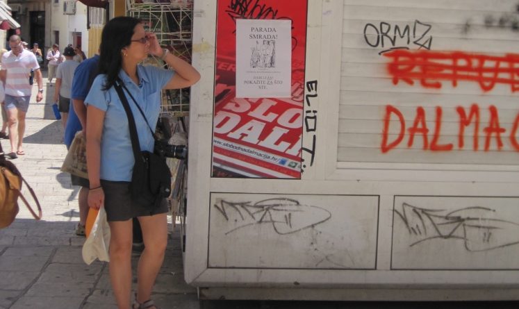 Na plakatima, kojima su oblijepljeni izlozi, kiosci i zidovi, nalaze se "prigodne" grafike homoseksualaca koji se ljube, seksaju se i jedan drugog ručno zadovoljaju. No, svi su ti antigej plakati uklonjeni tijekom noći, i do zore su svi "netragom nestali", a nije poznato tko ih je uklonio, piše portal dalmacijanews.