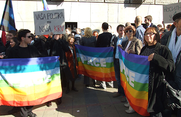 Okupljeni su Vladi Srbije želJeli demonstrirati svoje zahtjeve - Vlada mora javno osuditi sve zločine iz mržnje pa i one prema seksualnim manjinama, te mora donijeti nacionalni program za borbu protiv rasne i druge diskriminacije.