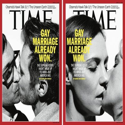 "Dugo smo raspravljali o ovotjednim naslovnicama", kazao je izvršni urednik "Timea", Rick Stengel. "Jedni su smatrali da su suviše senzacionalističke i provokativne, a drugi da su prelijepe te da simboliziraju ljubav koja je temelj braka. Ja se slažem s potonjima, a nadam se da i vi mislite isto."