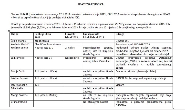 Budući da niti na jednim izborima – od parlamentarnih 2011. preko lokalnih i europskih 2013. godine ta radikalna desna politička opcija nije mogla okupiti podršku građana, članovi Hrasta odlučili su svoj program ljepše "upakirati" i kamuflirati ga u tzv. građansku inicijativu "U ime obitelji", upozorili su "Građani glasaju protiv".