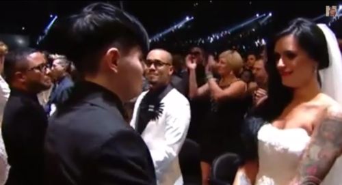 Samu dodjelu nagrada zasjenilo je masovno vjenčanje 33 heteroseksualna i istospolna para koje je vodila glumica i TV voditeljica Queen Latifah. "Velika mi je čast zamoliti naše sudionike da razmjene prstenje i obvežu se na vjernost", kazala je Latifah dok su parovi razmjenjivali zavjete, a Macklemore izvodio himnu bračne jednakosti "Same Love", uz pratnju Mary Lambert i Madonne, koja je pjevala "Open Your Heart".