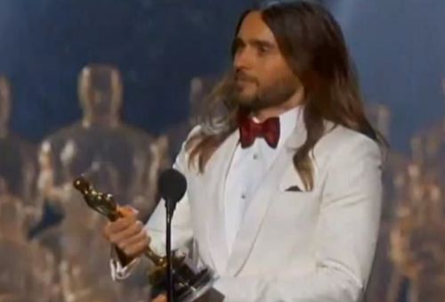 "Za sve sanjare koji nas večeras gledaju iz mjesta poput Ukrajine i Venezuele, želim reći da stojimo uz vas dok se borite za ostvarenje svojih snova. Večeras mislimo na vas. Ova nagrada je i za 36 milijuna ljudi koji su izgubili bitku protiv AIDS-a i za sve one koji osjećaju nepravdu zbog onoga što jesu i onoga koga vole. Večeras stojim ovdje ispred cijelog svijeta, s vama i za vas. Hvala vam i laku noć", održao je Leto nadahnjujuć govor i izazvao gromoglasan pljesak u dvorani.