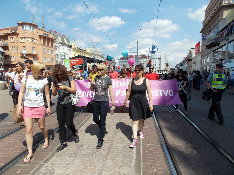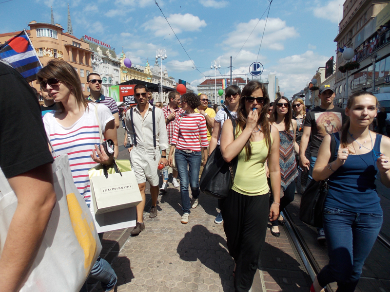 Nakon okupljanja na Trgu žrtava fašizma povorka je u 15 sati krenula kroz centar grada preko Trga bana Jelačića do parka Zrinjevac gdje je stigla nešto iza 16 sati.