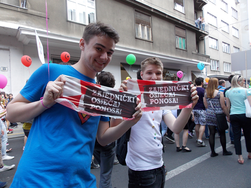Članovi i članice navijačke udruge "Uvijek vjerni", službenog Kluba navijača hrvatske nogometne reprezentacije, su kao znak solidarnosti, u suradnji s gradom Zagrebom, tijekom Povorke ponosa dali na korištenje videozid na Trgu bana Jelačića.