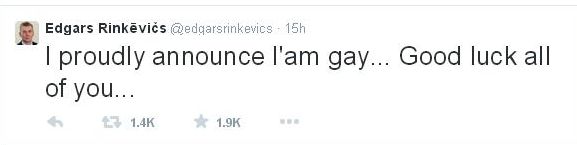 Latvijski ministar vanjskih poslova Edgars Rinkēvičs u četvrtak je javno obznanio da je gej i tako postao prvi istočnoeuropski političar koji je izišao "iz ormara".
