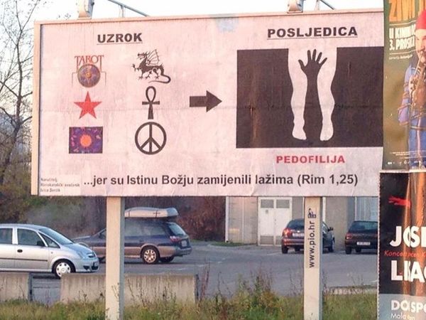 Plakat takvog sadržaja je objavio, kaže nam, "kako bi ljudima objasnio što znači otpasti od Boga, piše vam i u poslanici na plakatu. Ima više uzroka pedofilije, kad se čovjek odvoji od Boga onda nastane puno zla".