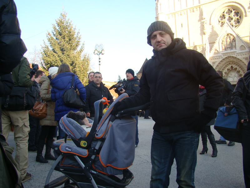 Kekin je došao sa svojim djetetom u kolicima, što katolike iz rulje nikako nije spriječilo da mu prijete nasiljem