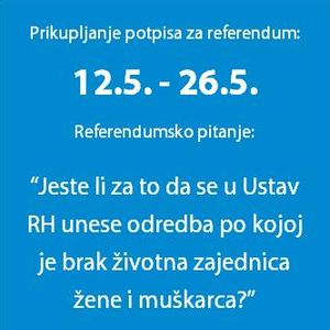 Potpisi će se prikupljati na više od dvije tisuće lokacija u Hrvatskoj, a članovi inicijative na konferenciji za novinare najavili su da očekuju najmanje 375 tisuća potpisa (deset posto upisanih birača), koliko ih je potrebno za raspisivanje državnog referenduma. Očekivanja, kažu, temelje na istraživanjima koja pokazuju da 90 posto hrvatskih građana brakom smatra samo zajednicu žene i muškarca.