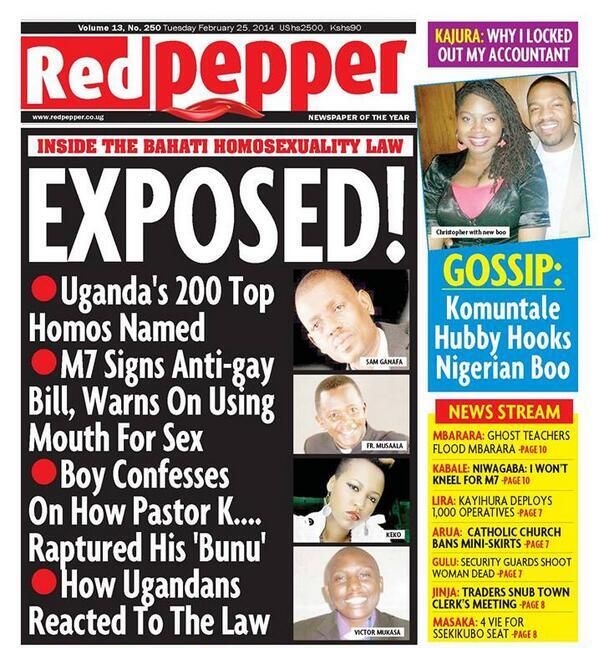 Uganda je u ponedjeljak postala još jedna u nizu afričkih zemalja koje zakonom kažnjavaju homoseksualnost, a spomenuti tabloid podržao je zakon na sebi svojstven način. Uz žuto-senzacionalistički naslov "Otkriveni!", objavili su popis imena 200 homoseksualnih osoba, među kojima su se našla imena aktivista i običnih građana, piše Guardian.